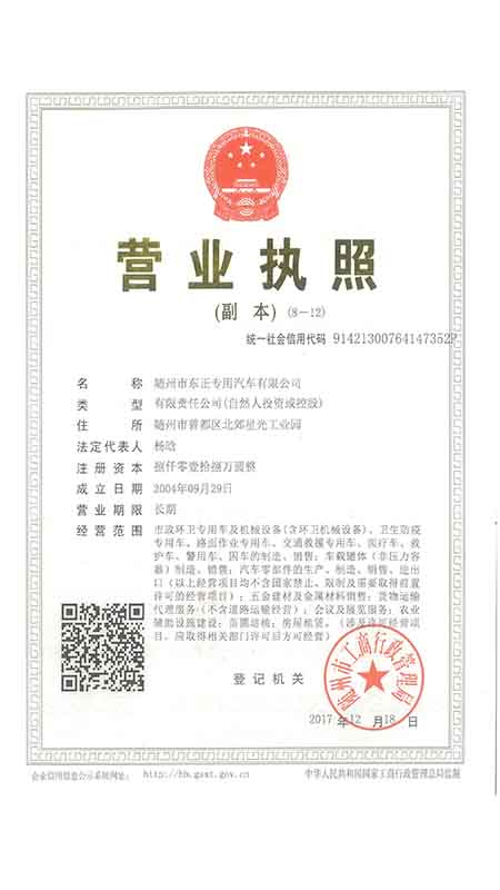 隨州市東正專用汽車有限公司地處馳名中外的中華始祖炎帝神農(nóng)故里,編鐘之鄉(xiāng)汽車名城——隨州市。本廠是國家定點改裝廠,是東風汽車公司改裝基地,是一汽貿(mào)易公司網(wǎng)點單位,有九大生產(chǎn)車間,所有產(chǎn)品都是國家《公告》有光盤的產(chǎn)品,全部產(chǎn)品都符合新法規(guī),滿足新標準。