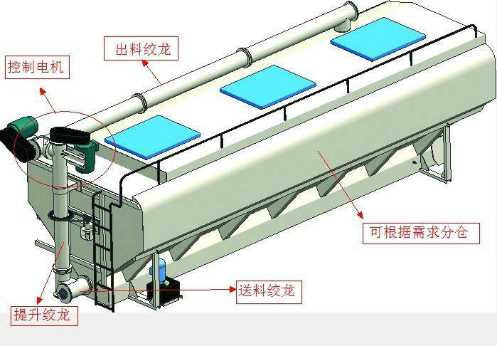 上裝罐體:罐體材質(zhì)采用4mm優(yōu)質(zhì)碳鋼板,整車3條絞龍,通過(guò)變速箱帶動(dòng)取力器取力后帶動(dòng)各絞龍工作可左右旋轉(zhuǎn)180°。罐體內(nèi)分為貳個(gè)倉(cāng),可以獨(dú)立控制各分倉(cāng)卸料順序和速度。